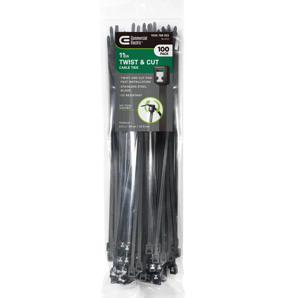 Commercial Electric 11 in. Twist and Cut Cable Tie, Black (100-Pack)