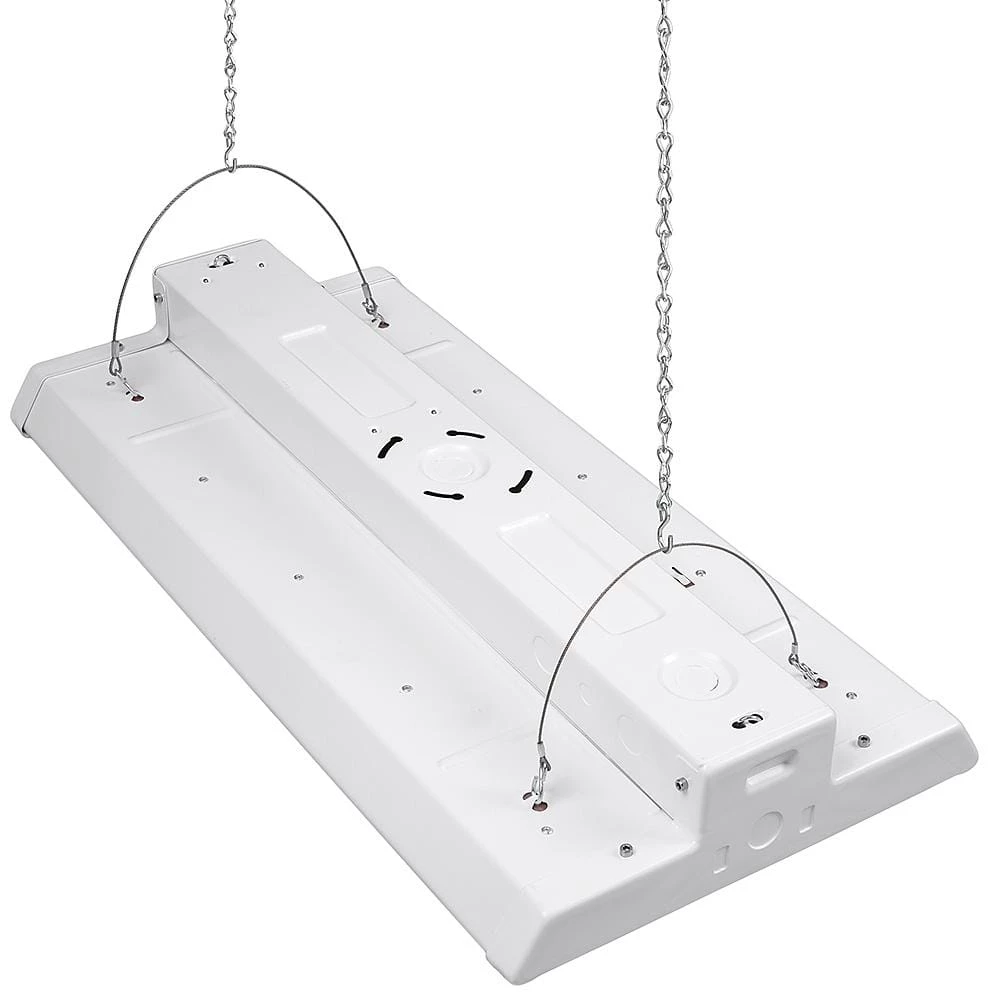 Commercial Electric 2ft. High Output Integrated LED Linear High Bay is the perfect replacement for those power-draining 400-Watt Metal Halide or T8 fluorescent tubes. Constructed of a robust durable design, it is shatter-resistant, with no hot spots and will not discolor over time. There are 3 mount options: Suspension, Surface and Stem installation. With its superior energy-efficient light engine, this high bay is maintenance free with no bulbs to replace for up to 60,000 hours of continued use. Ideal applications are large garage, shipping/receiving, warehouse and aisles, large commercial retail stores or sports facility.