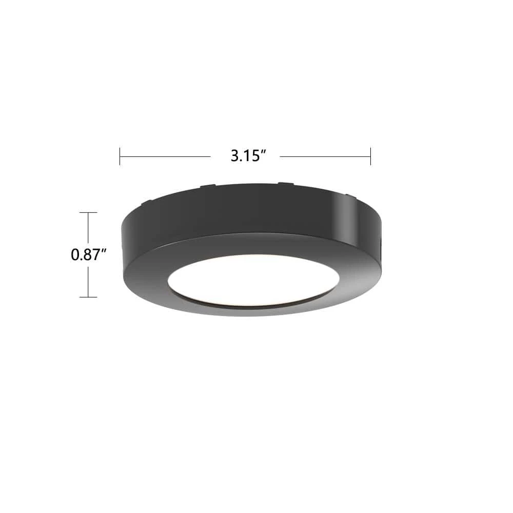 3-Light LED CCT changing Puck Light Kit, white and black. LED light provides even light distribution, warm white light and a cool operating temperature. The AC LED module is built inside the puck light, no transformer and extra wires for easy installation. CCT selectable option with 2700K (Warm white)/3000K (Soft white)/4000K (Bright white).