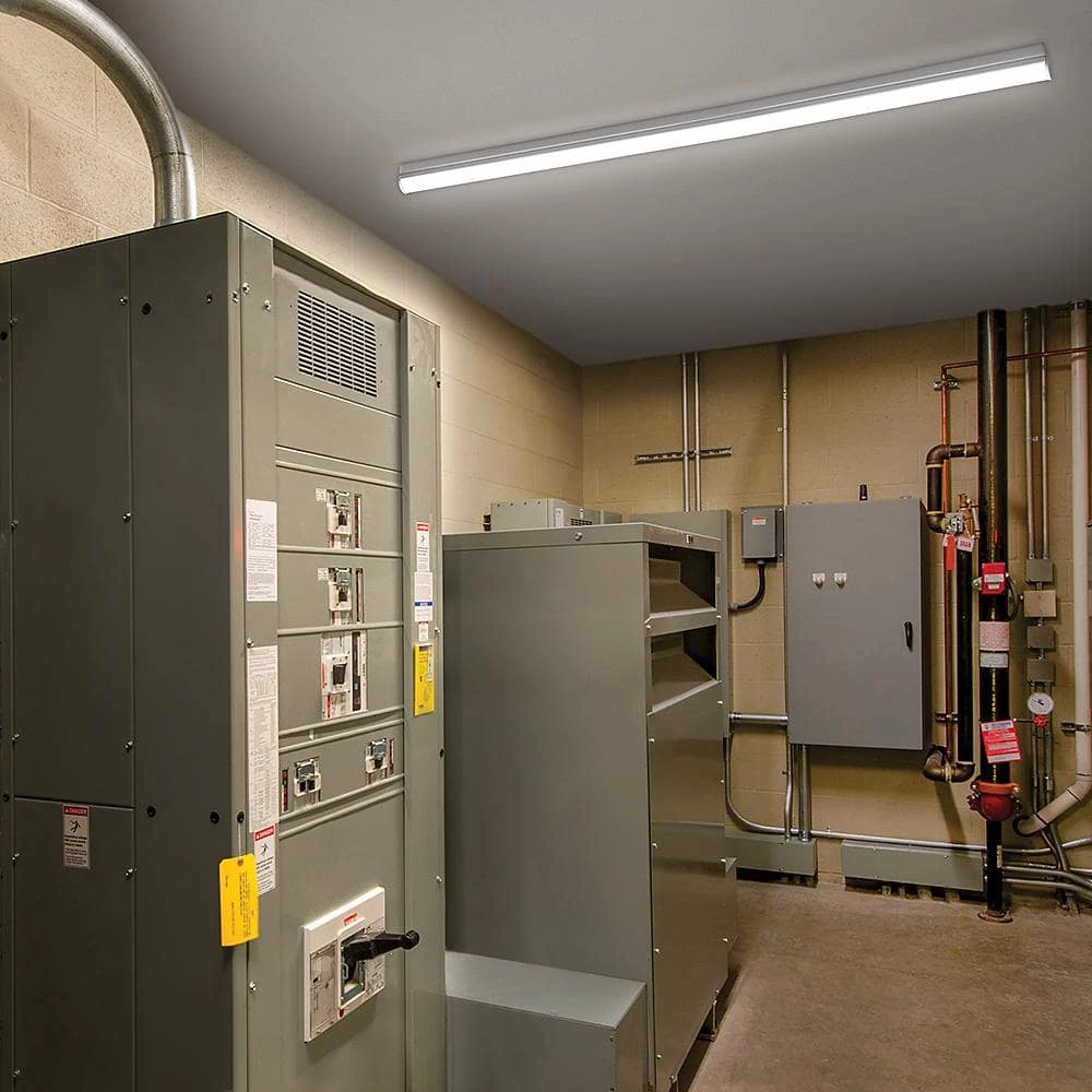 Commercial Electric’s 4 ft. High Output Linkable Integrated LED Strip Light replaces outdated fluorescent lights with cool energy-efficient LEDs. It emits powerful 5500 Lumens of brightness with 4000K Bright White light output using 50-Watts of electricity and dimmable. This strip light easy to install with all the wiring connections located inside the body of the fixture. It is linkable up to 8 units and offers multiple lighting configurations to maximize your lighting needs. Use mounting brackets to create the optimal lighting for your workspace: “T”, “L”, “X”, Parallel or Adjustable brackets. (each sold separately). Suggested applications are garage, repair shop, store aisles, open concept office, warehouse aisles, showrooms or small loading docks and more.