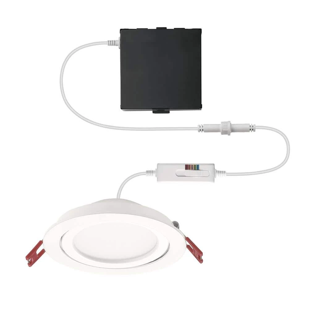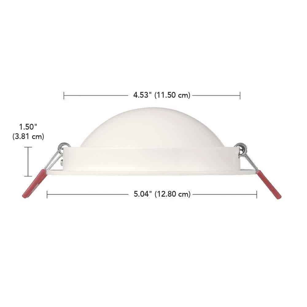 The Commercial Electric Ultra Slim Recessed Lighting Kits are designed specifically for small spaces where height clearance is limited such as beams or ductwork and you can change the color temperature with a flick of a button. The integrated color changing switch is located on the back of the light so you can choose between a 2700, 3000, 3500, 4000 or 5000 Kelvin temperature to best suit your needs. 2700 or 3000 Kelvin is perfect for relaxing, 3500 or 4000 Kelvin is the ideal choice for everyday affairs and 5000 Kelvin is great for task lighting in a basement, hallway or work area. ENERGY STAR certified and IC rated for direct contact with insulation, these lights won’t overheat, do not require a bulky can and will last for years to come – 50 000 hours or approximately 45 years if used for 4 hours per day to be exact. Wet rated and certified airtight, this 4 in. kit is perfect for your bathroom, drop ceilings, outdoor soffits and all general lighting applications.