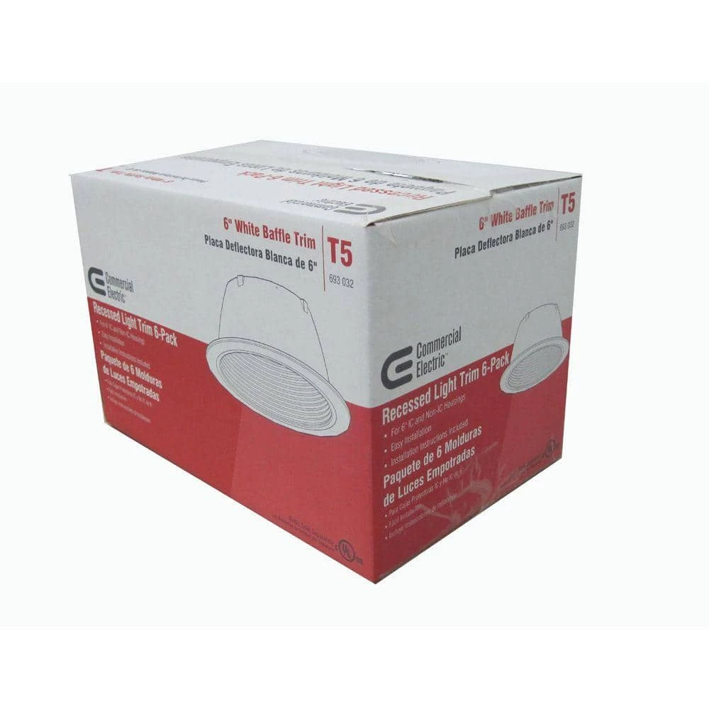 These Commercial Electric 6 in. Recessed Baffle Trim (6-Pack) is ideal to use for general area lighting or to create dramatic lighting accents. With a baffle to help reduce glare and a white finish to blend well with most ceilings. These trims are an ideal option for your lighting needs.