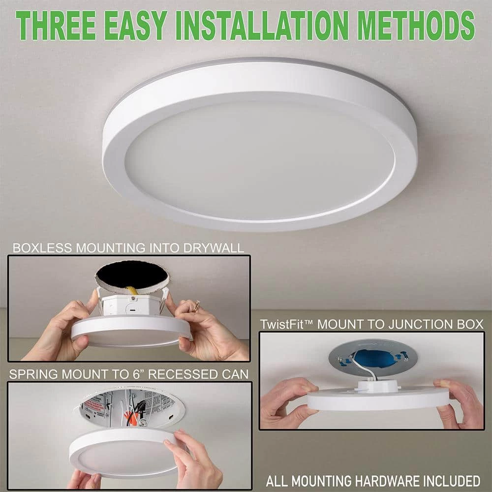 Commercial Electric 7.5 in. White Round Color Change CCT LED Flush Mount Ceiling Light Fixture w/ Night Light 3-Way Mount 800 Lumens