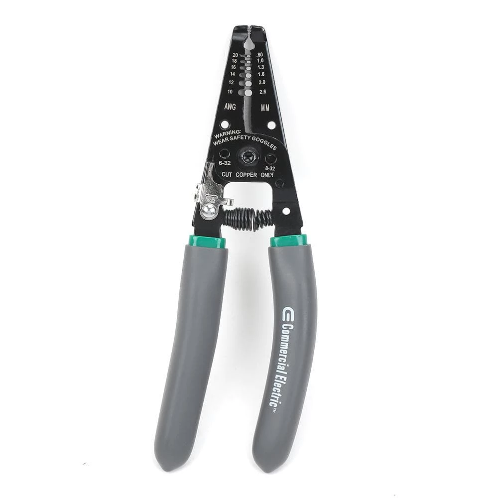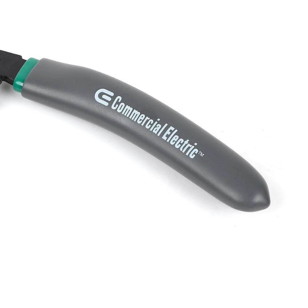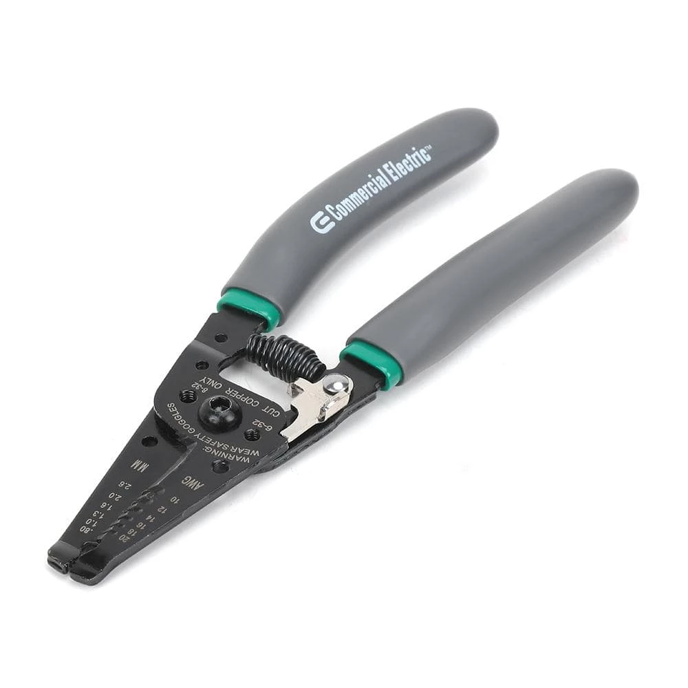 The curved-handle design of the Commercial Electric 7 in. Wire Stripper and Cutter makes it ideal for use in confined spaces. This tool offers a serrated nose for strong gripping of wire for bending shaping and pulling applications. Shear-type wire cutter.