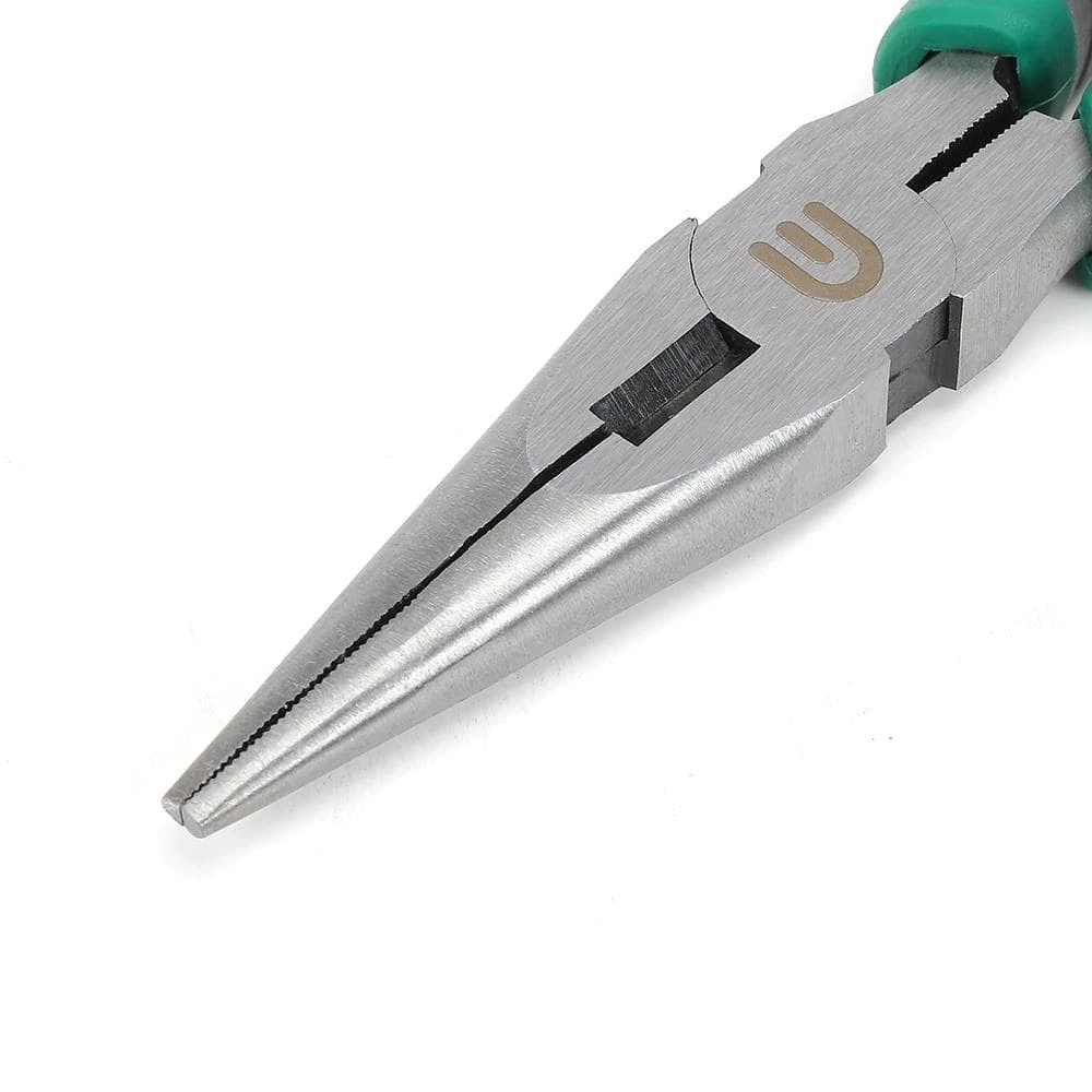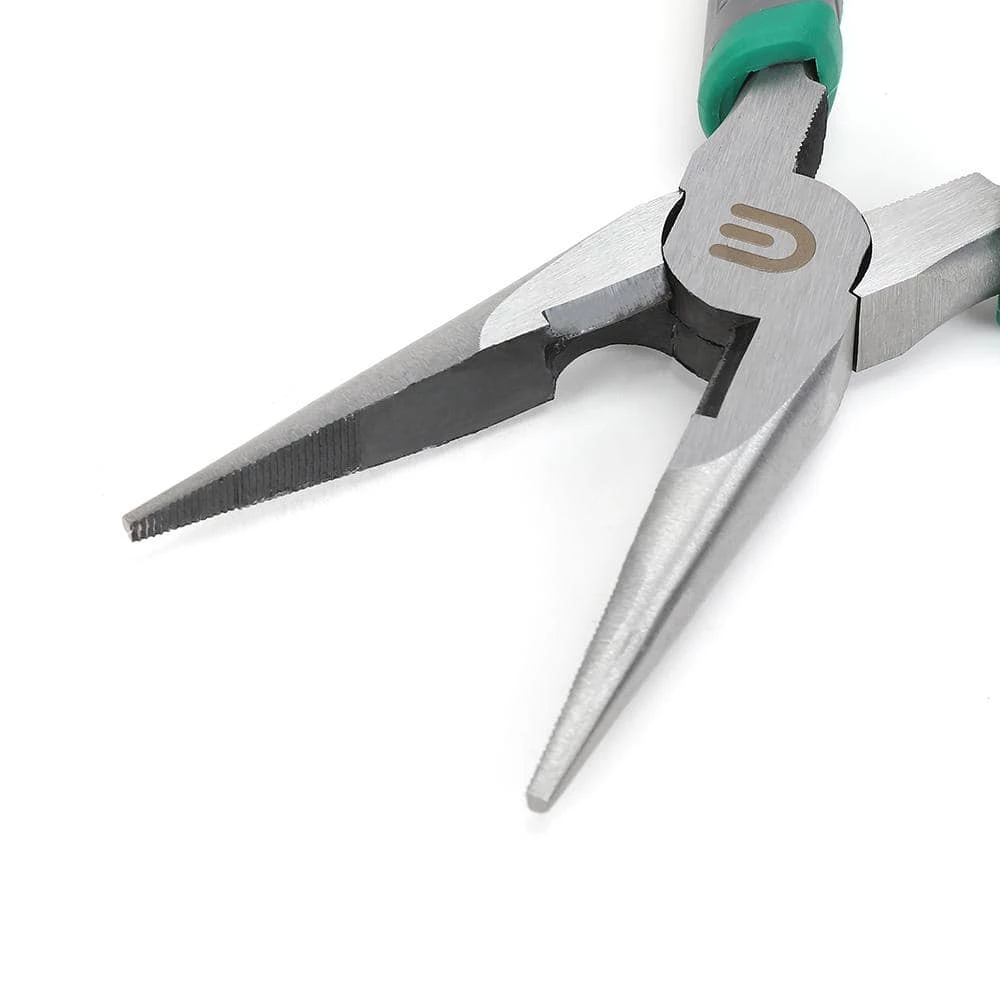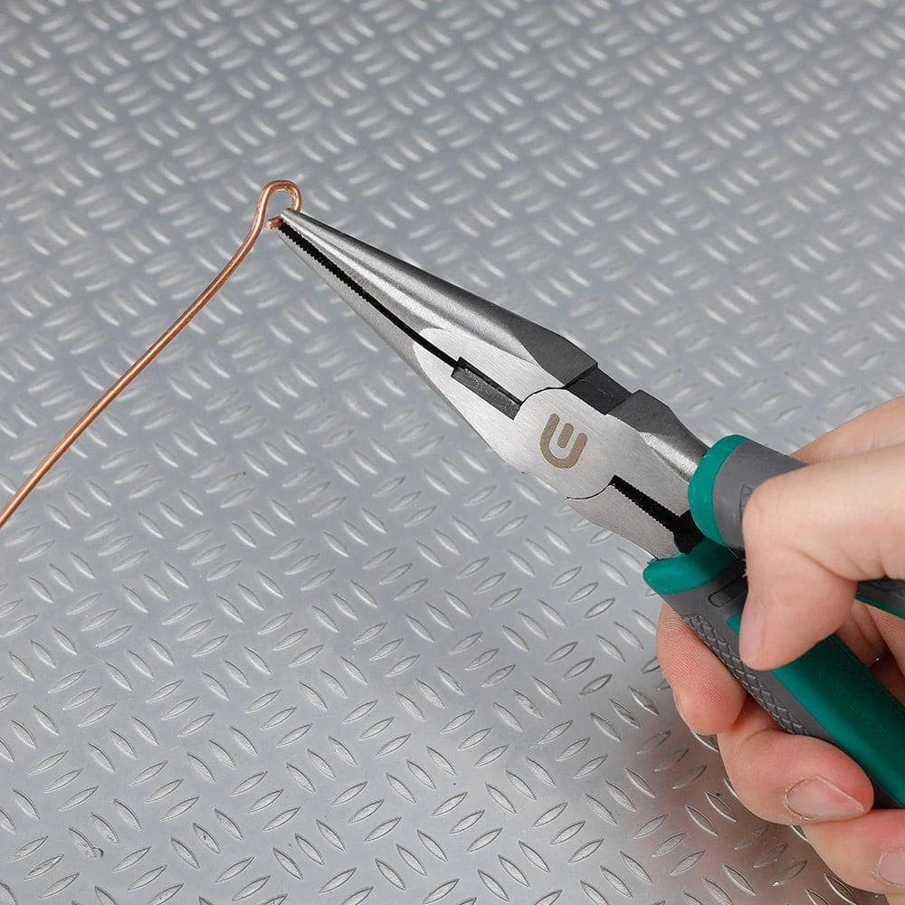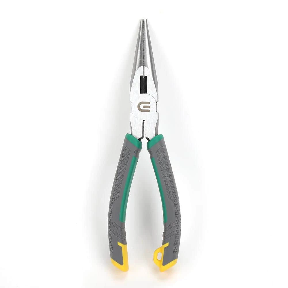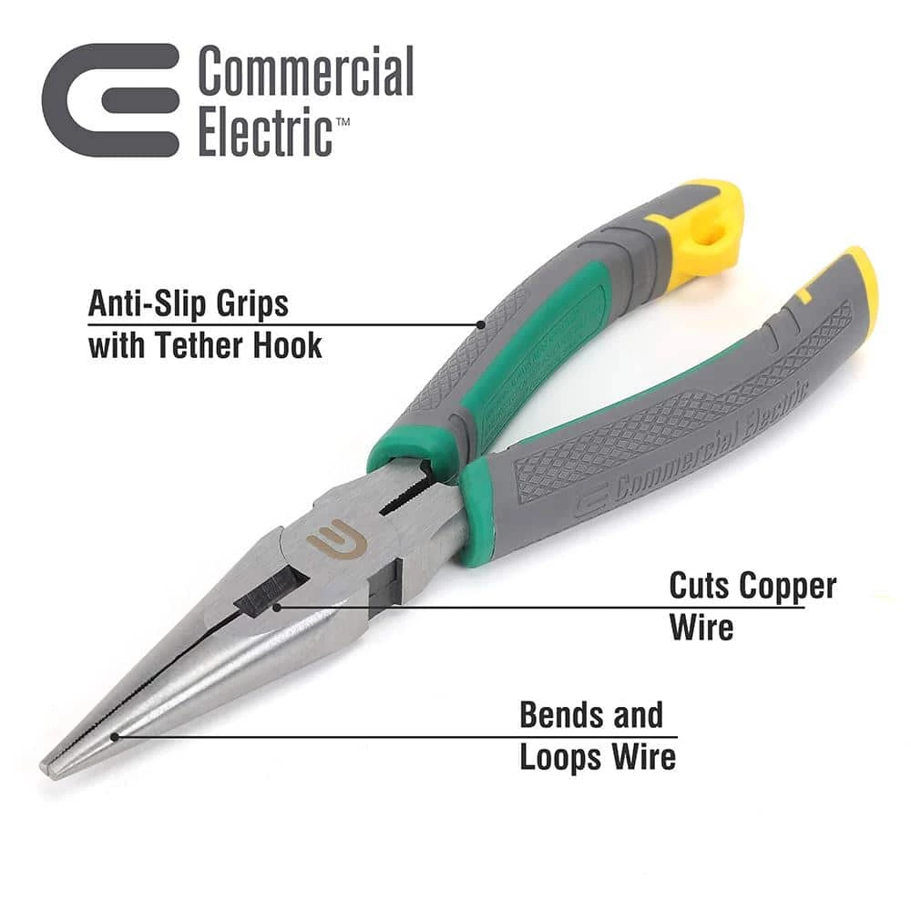 The Commercial Electric 8 in. Long Nose Pliers are ideal for working with wire in tight spaces. They feature a long nose design, non-slip gripping power, and heat-treated side-cutting knives for strength. Perfect tool for the home, workshop, or jobsite.