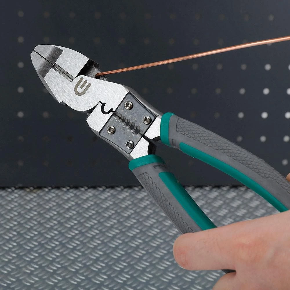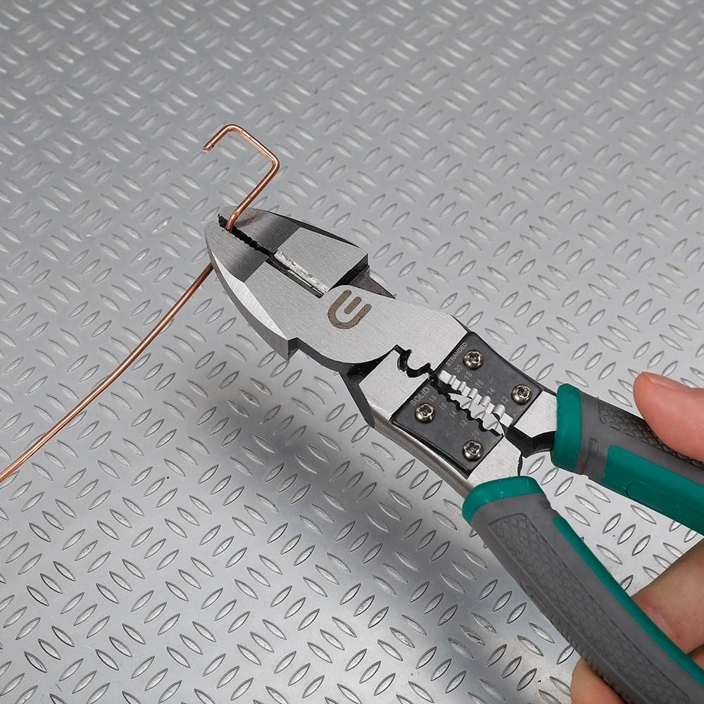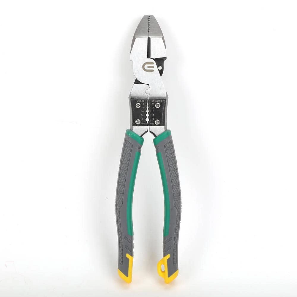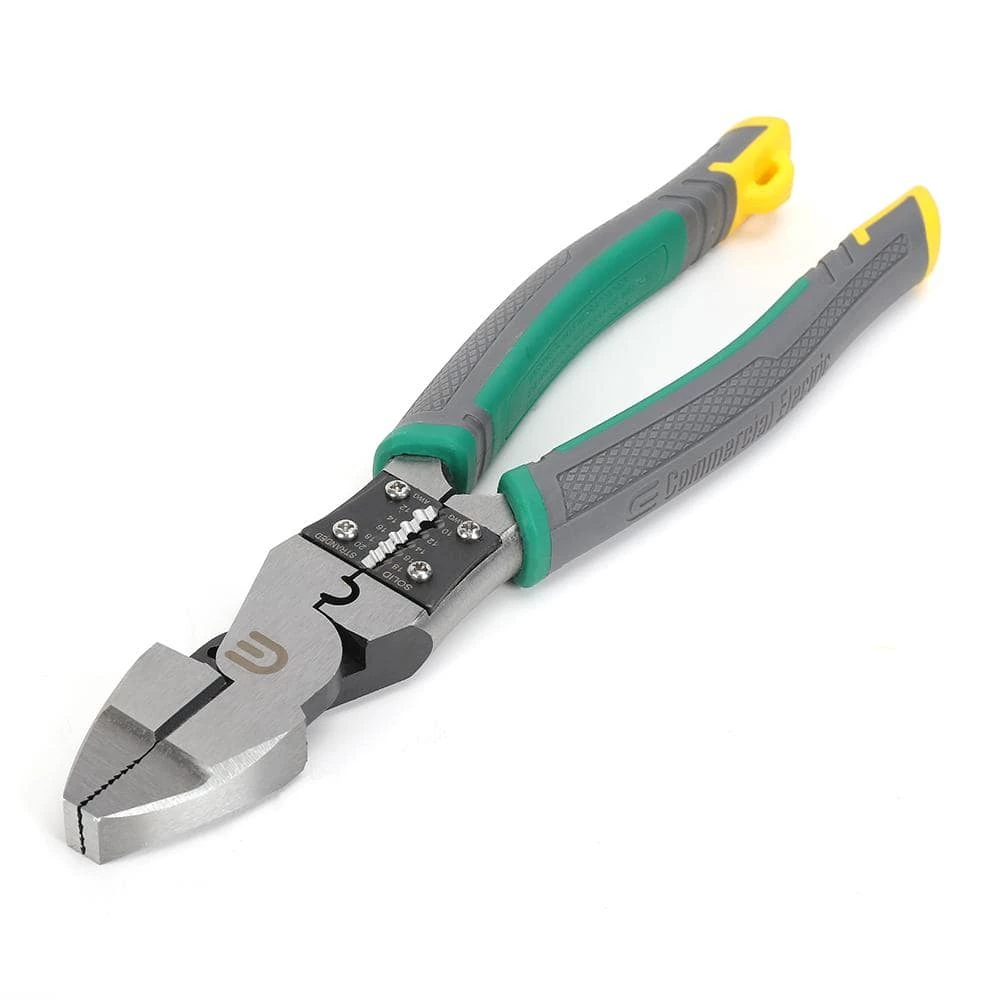 The Commercial Electric 9 in. High-Leverage Multi-Purpose Linesman Pliers is a perfect tool for the home, workshop or jobsite. Includes high leverage linesman pliers, wire stripper, wire cutter, wire looper and terminal crimping die. Also includes an ergonomic molded non-slip grip handles.