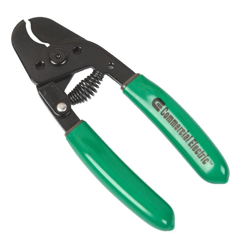The Commercial Electric Cable Cutter cuts twisted pair and coaxial cable and provides accurate cuts without cable distortion. This tool cuts round so it will not disrupt the geometry or performance of the cable. Constructed of drop forged, high carbon steel and rubber grip handles for comfort and durability.