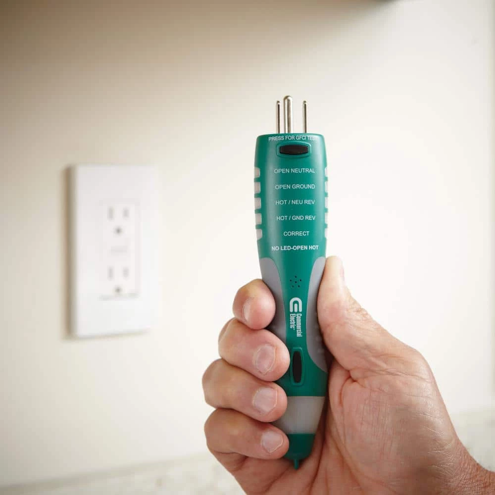 - Save time and money with 2 popular testers in 1 unit featuring a non-contact voltage detector on one end and GFCI outlet tester on the other
