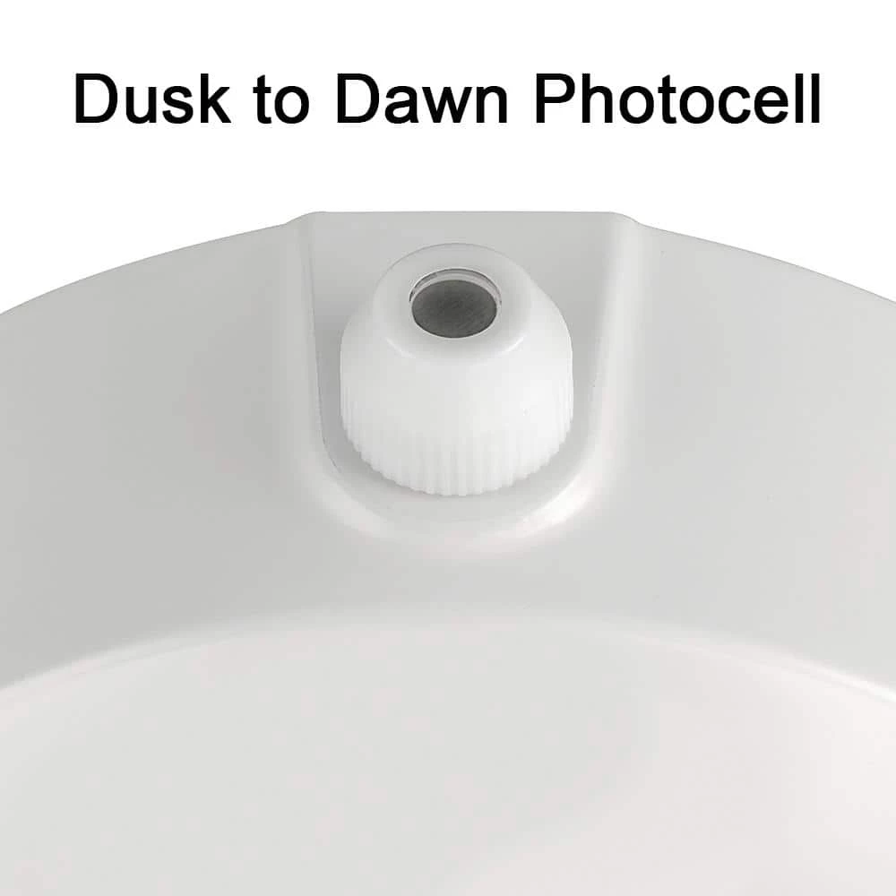 - DUSK TO DAWN: Photocell senses light or lack of light in a specific area – Will automatically turn lights on at sunset and turn lights off at sunrise