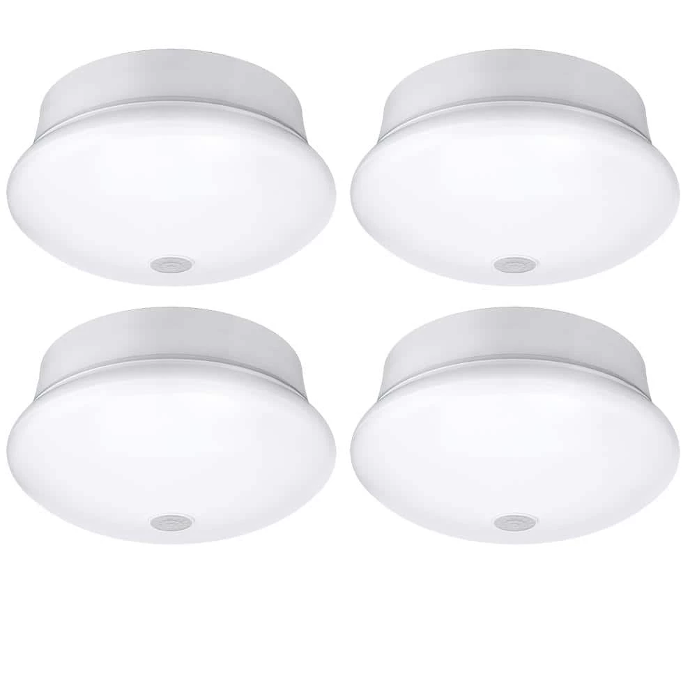 Commercial Electric’s Spin Light 7 in. Motion Sensor LED Flush Mount ceiling light have two unique functions; converts bare lamp holder into an energy-efficient LED fixture and built-in motion sensor. Spin Light fixtures are designed to screw into most existing plastic and porcelain lamp holders without any wiring required. You control the motion sensor by adjusting hold times: 2, 5 or 15 min. after last detection. It eliminates the hassle of feeling around for the wall switch or pull cord when entering a space. Light detects motion up to 8.5 feet. This motion sensor fixture emits 830 Lumens of brightness using 11.5-Watts of energy and 4000K Bright White color temperature of light output. It is easy to install, has long-lasting light engine and maintenance free with no bulbs to replace. Ideal for closets, garage, pantry, laundry room, stairway, hallway or other dark areas.