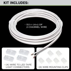 Commercial Electric 13 ft. White Connector Cord LED Strip Light Accessory Pack (4 Wire-to-Tape Connectors, 6 Wire Mounting Clips)