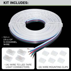 Commercial Electric 13 ft. Connector Cord LED Strip Light Accessory Pack (RGB+W) (4 Wire-to-Tape Connectors, 6 Wire Mounting Clips)