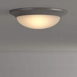 Commercial Electric 13 in. 2-Light Brushed Nickel Flush Mount with Frosted Glass Shade (2-Pack)