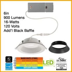 Commercial Electric 6 in. White Flush Round Wet Rated LED Integrated Recessed Lighting Kit (6-Pack)